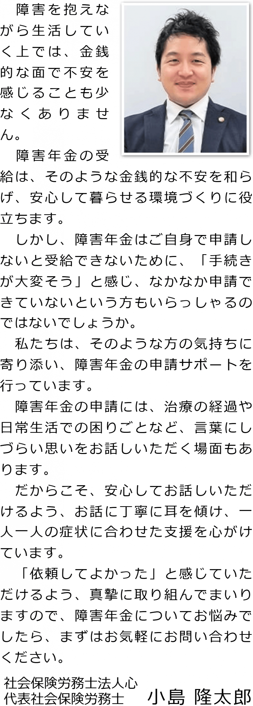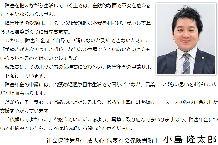 障害年金の申請をお考えの方は、どうぞお気軽に当事務所にご連絡ください。